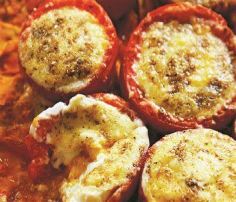 Ετοιμάζετε τη μπεσαμέλ και προσθέτετε το μισό τυρί. Γεμίζετε τις ντομάτες με τη γέμιση κατά τα 3/4 και σκεπάζετε με τη μπεσαμέλ.